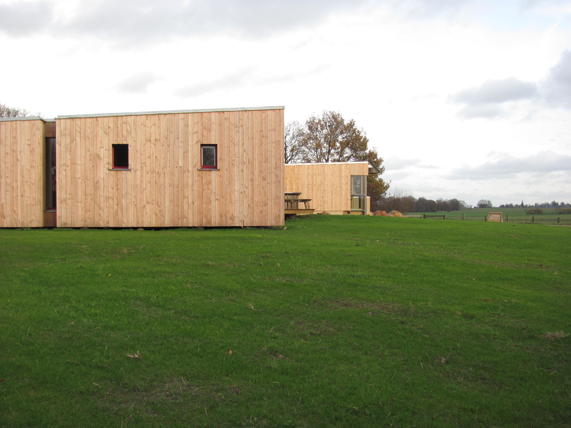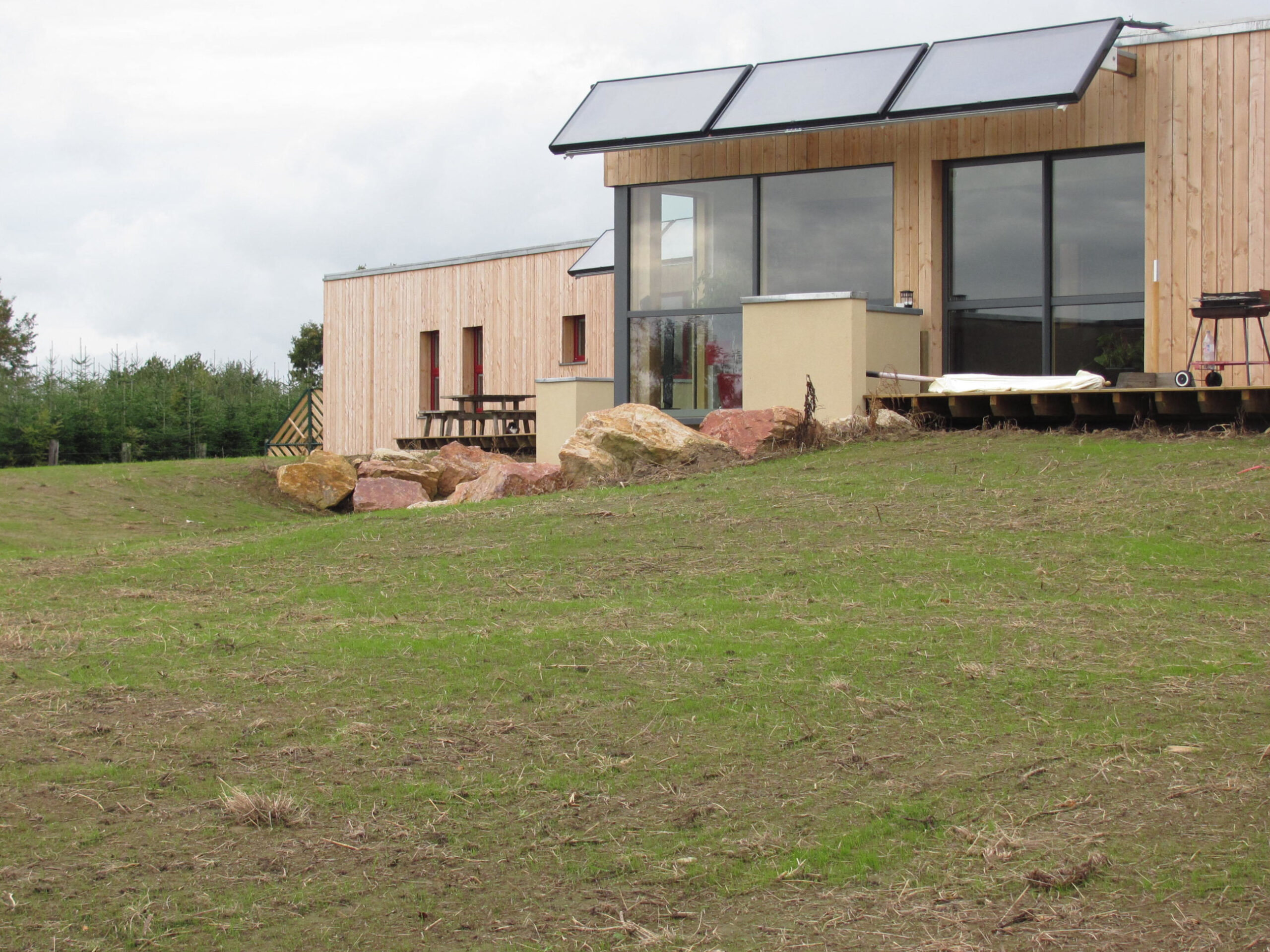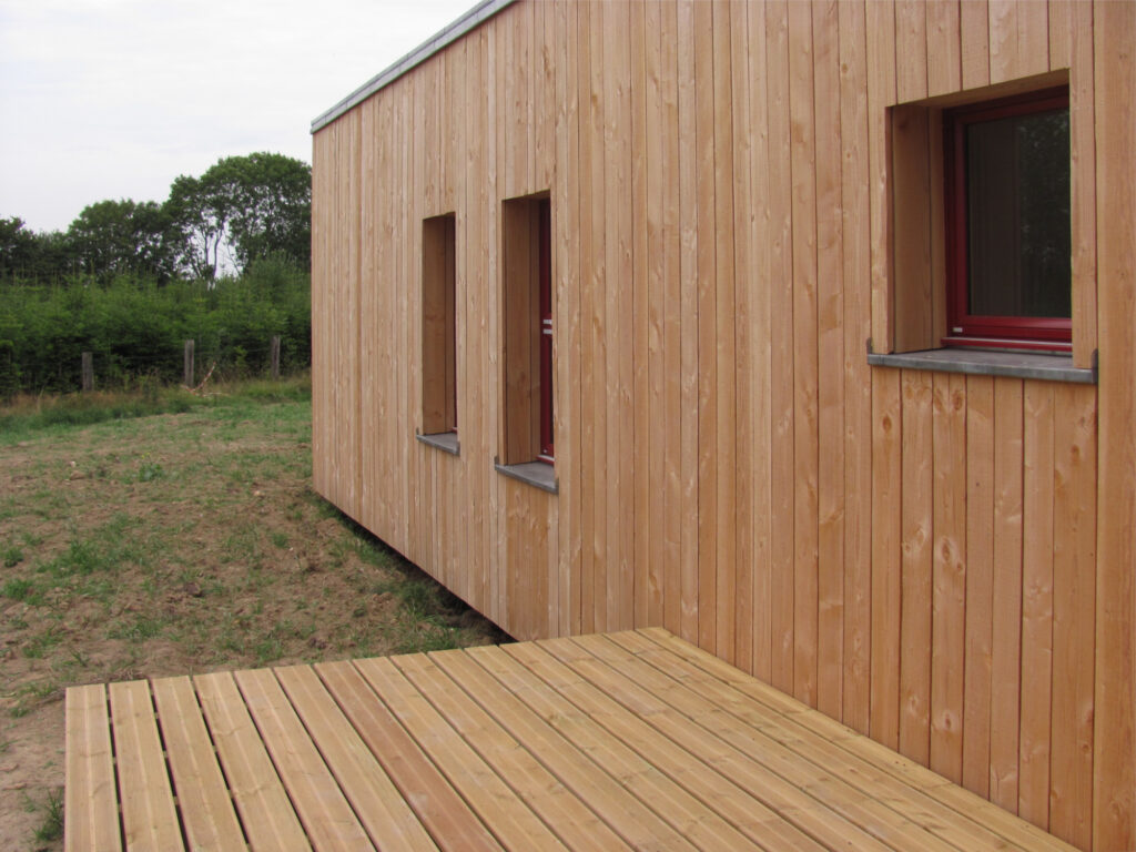 planchers et la charpente sont en bois avec des façades en Douglas, brut de sciage et Naturel.